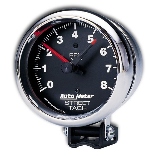 Performance 8000RPM Street Tachometer Cylinder for 4/6/8 Chrome