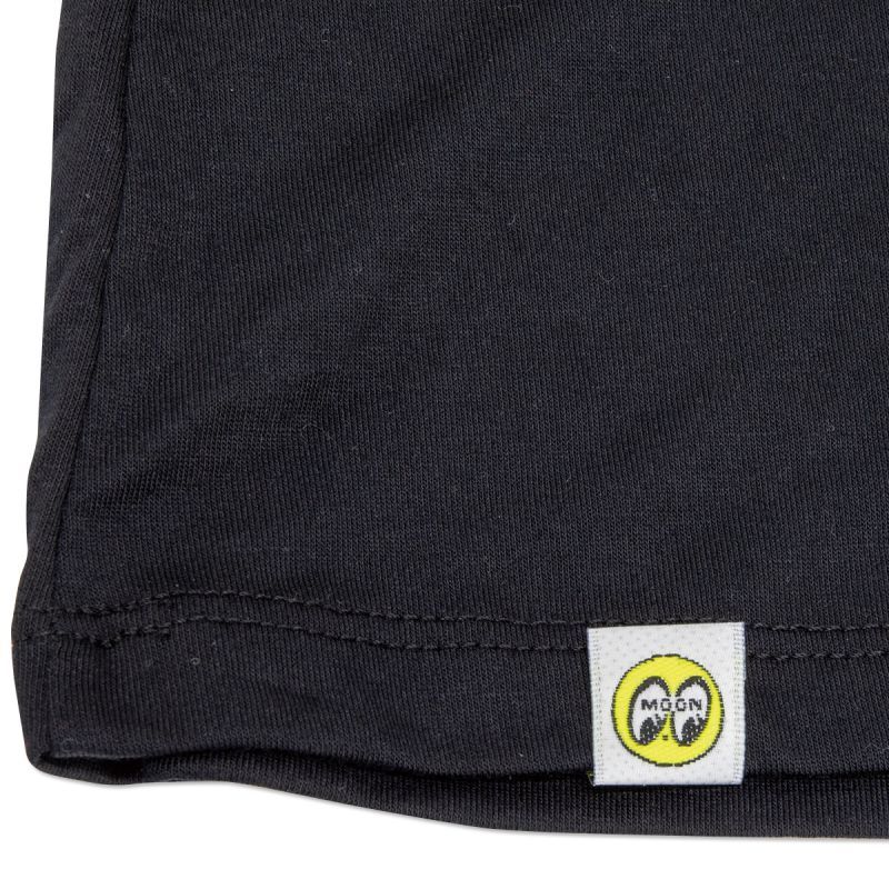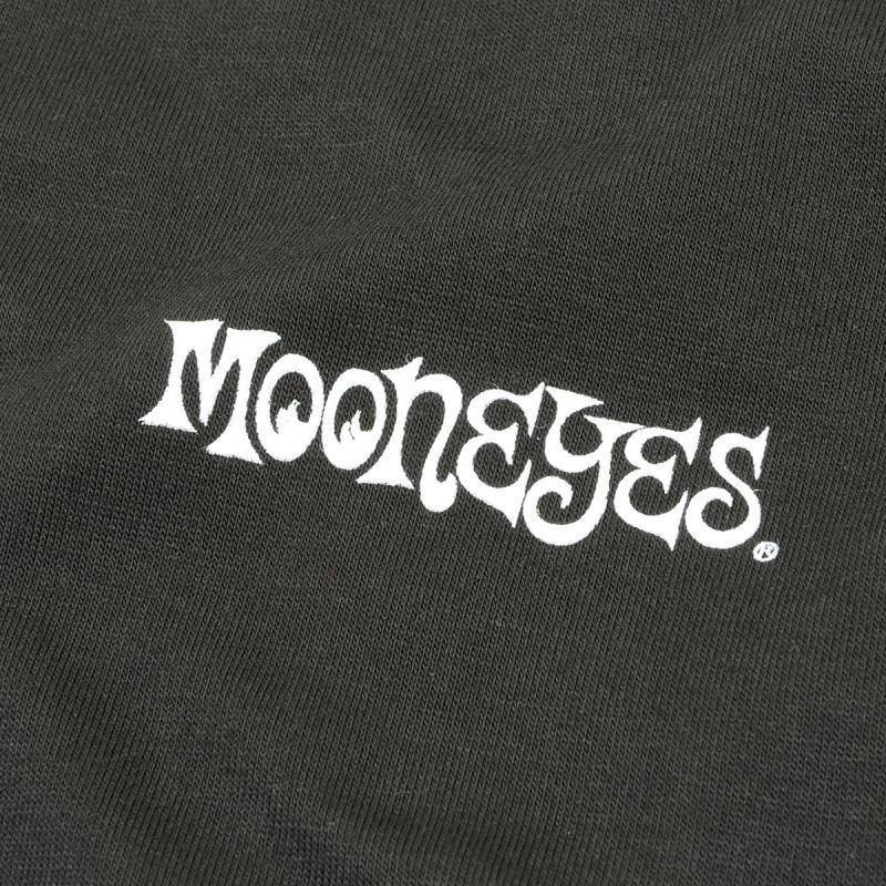 It is airy and cool to wear and it has a trend-forward silhouette that shows the charm of the lady. On the front 90’s style, POP font MOONEYES is printed and on the hem, there is a tag of MOON Eyeball as an accent.