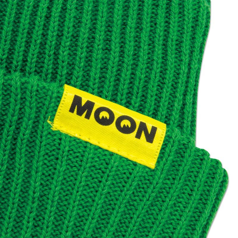 A calm color beanie and there is a Yellow MOON tag as an accent.