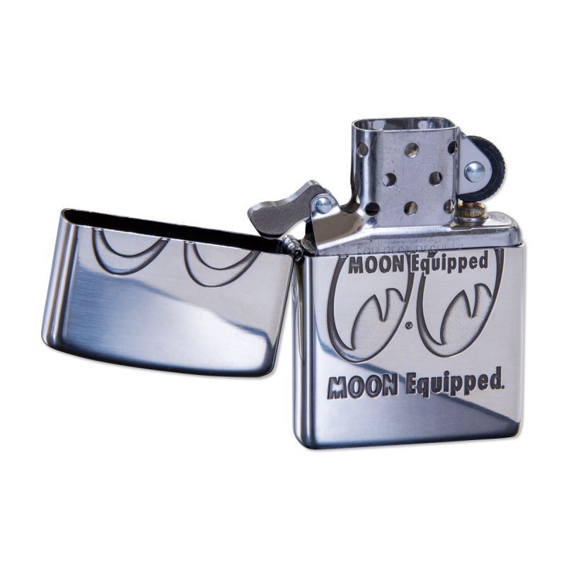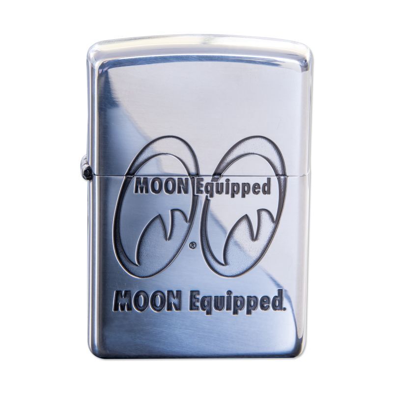 Genuine MOON Equipped Zippo Lighter is released from the ZIPPO Manufacturing company which long loved since the 1930s. The sophisticated simple design and the silver exaggerate its charm. On the front MOON Equipped logo and Eyeshape, for the back, the MOON Equipped logo, MOON Equipped ZIPPO LIGHTER SMOKERS, CEASE FIRE is designed. The etching process is used for the design and the design will not disappear over the years. Long last item of MOONEYES.