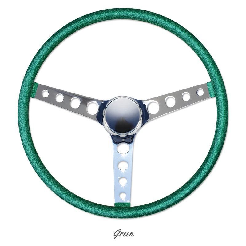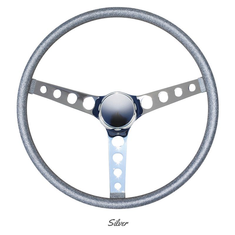 MOONEYES Original Steering Wheel Series's "METAL FLAKE FINGER GRIP" type. By the "FINGER GRIP" it is easier to control and looks more like Old School! Shiny chrome on all sides of the metal surface.