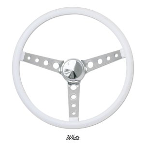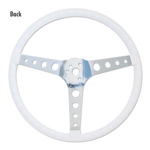 MOONEYES Original Steering Wheel Series's "FINGER GRIP" type. Traditional color of White steering wheel. By the "FINGER GRIP" it is easier to control and looks more like Old School! Shiny chrome on all sides of the metal surface.