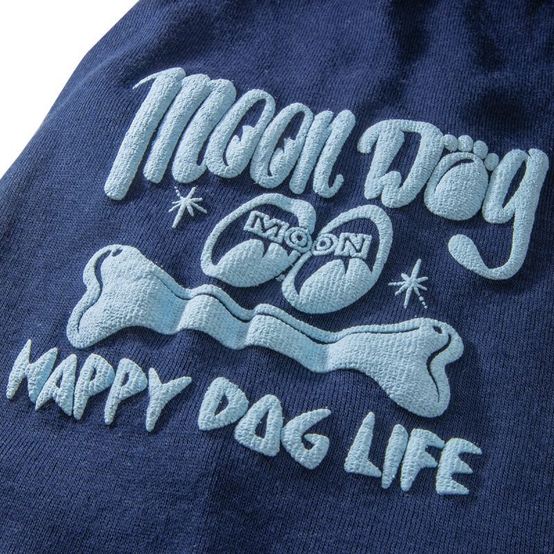 On the CQQL Navy hoodie, Cute fluffy printing is used. MOON DOG LIFE, MOON Eyeshape Logo and doggy’s favorite bone are on the front. The doubled line is an accent and your doggy will get event more CQQL and Cute!