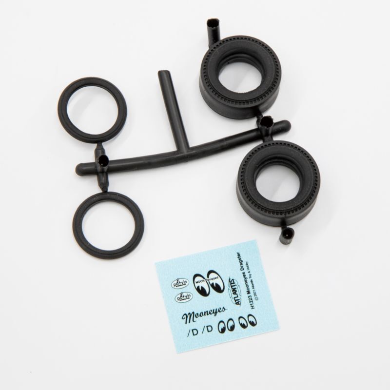 1/25 Scale. This kit comes from old custom car parts. Atlantis has retooled and fixed many of them to bring this kit to life. The kit will be molded in white and chrome with newly tooled tires. Features Dragmaster chassis, tons of extra customizing parts, detailed chevy engine with Potvin manifold.