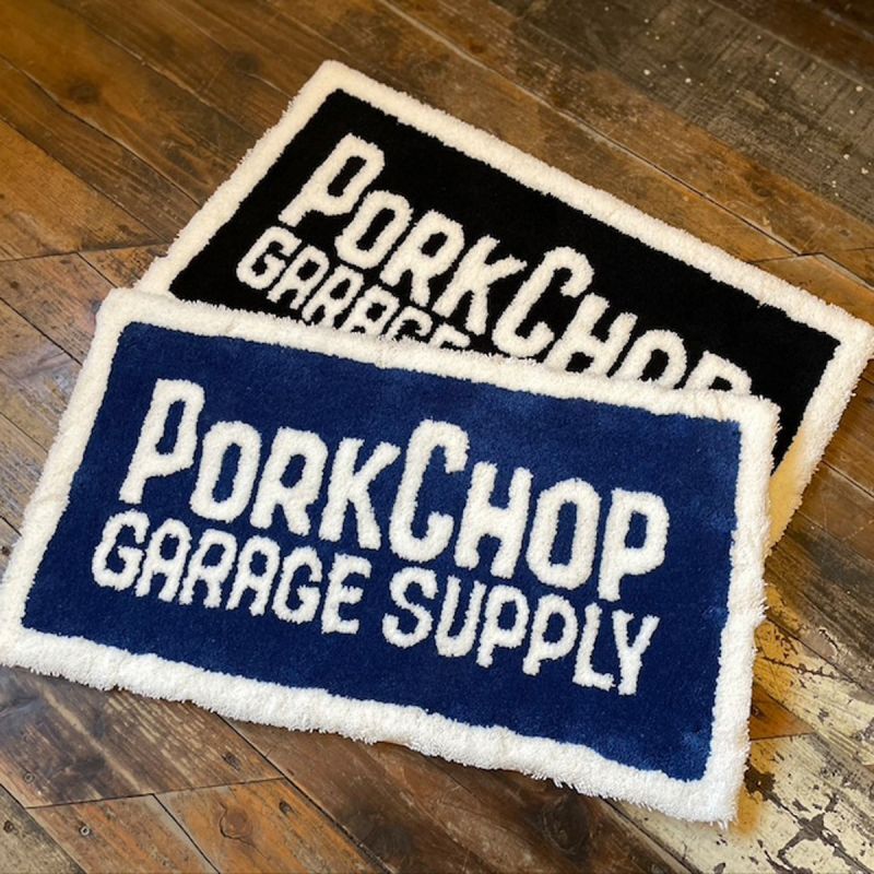 A simple rug mat with PORKCHOP GARAGE SUPPLY designed.