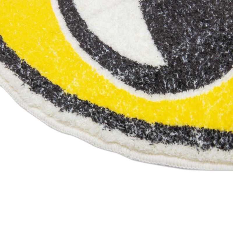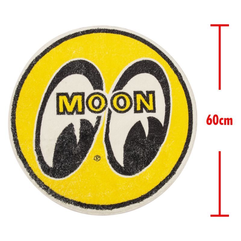 The round shape floor mat of MOONEYES' iconic yellow eyeball logo.
