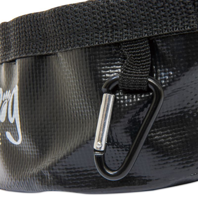 When you are not using it you can fold and use the carabiner to put it on a leash or bag.