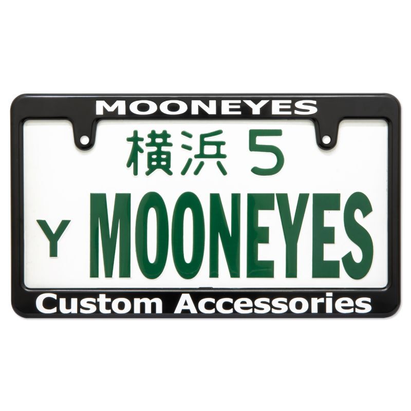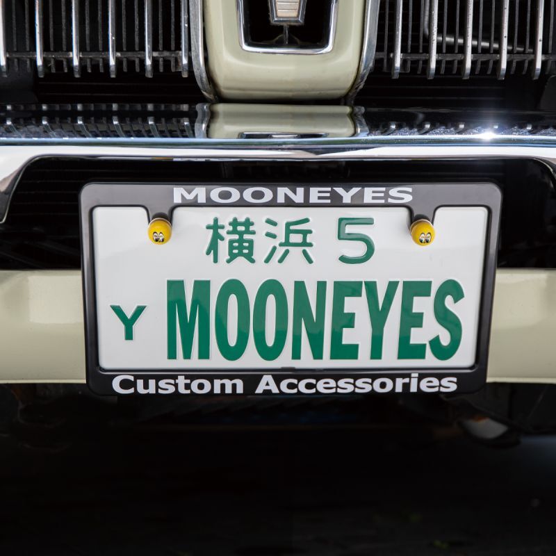 These custom lettering plates are made in-house here at MOONEYES Area-1 in Honmoku, Yokohama. They are made from custom print and cut sticker sheets and applied to the frame. One line, in general, can fit up to 20 characters.