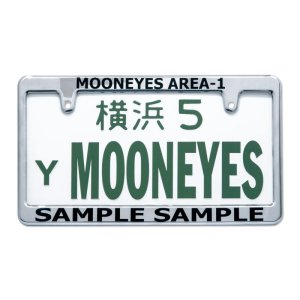 These custom lettering plates are made in-house here at MOONEYES Area-1 in Honmoku, Yokohama. They are made from custom print and cut sticker sheets and applied to the frame. One line, in general, can fit up to 20 characters.