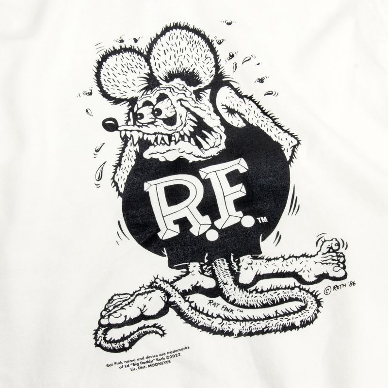 We have prepared Black and White which are the colors that can easily match any outfit. On the front and back, Rat Fink is tastefully printed. Although it is an impactful design with the Rat Fink, the monochrome coloring will give simplicity.