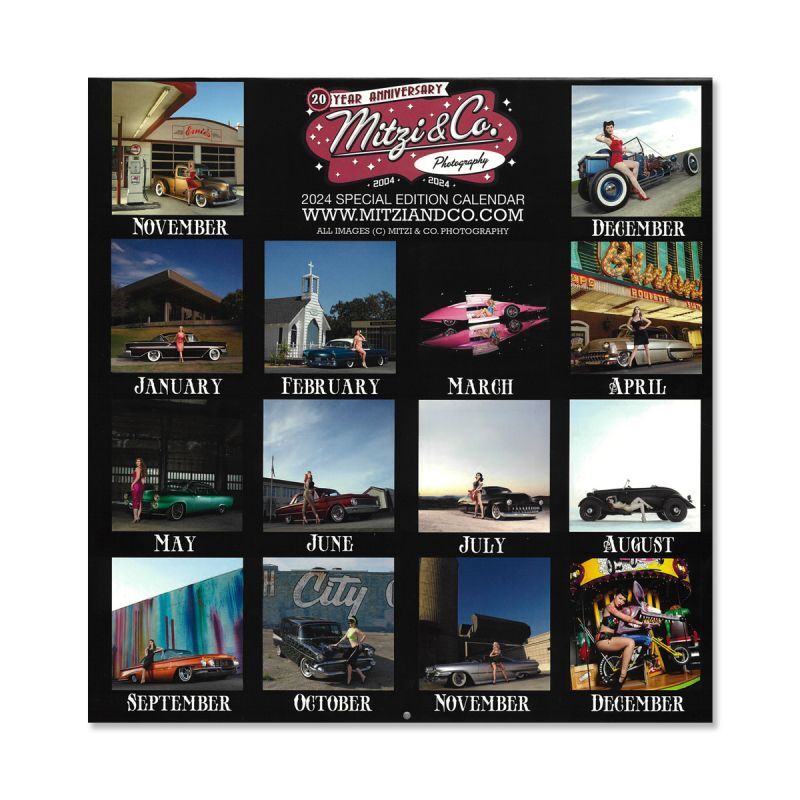 Calendar of 2024, with various types of HOT ROD & Custom Car and Sexy girls somewhat retro.