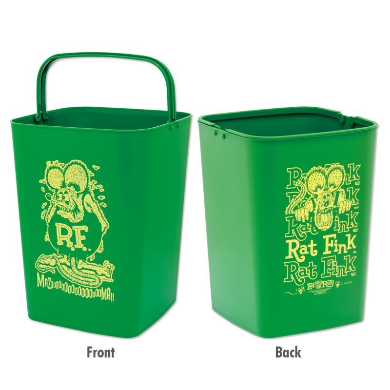 The standing Rat Fink is printed on one side, and on the other side it is a playful design of Rat Fink peeking from the Rat Fink Logo.