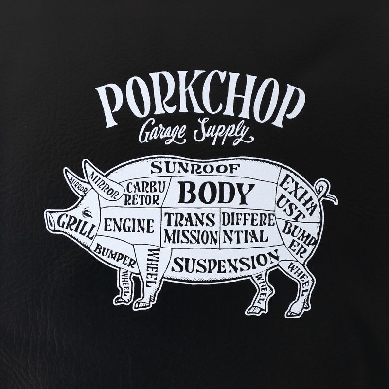 Came into existence from garage. This project was created from the conversation between Yoneuchi from Valley Auto and Sugihara from Fusty Works. It is not apparel. It is everything from our lifestyle concept of garage usages. We named it a PORKCHOP because the hog farm was shut down by our neighbors and we love chop culture. We send our favorite American culture through our garage supply as the PORKCHOP.PORKCHOP.