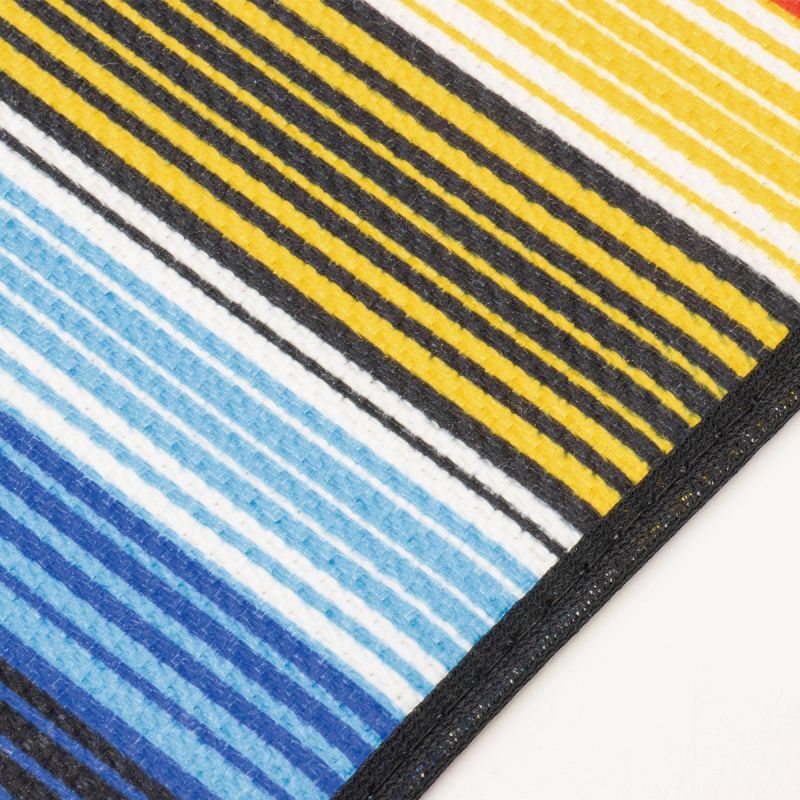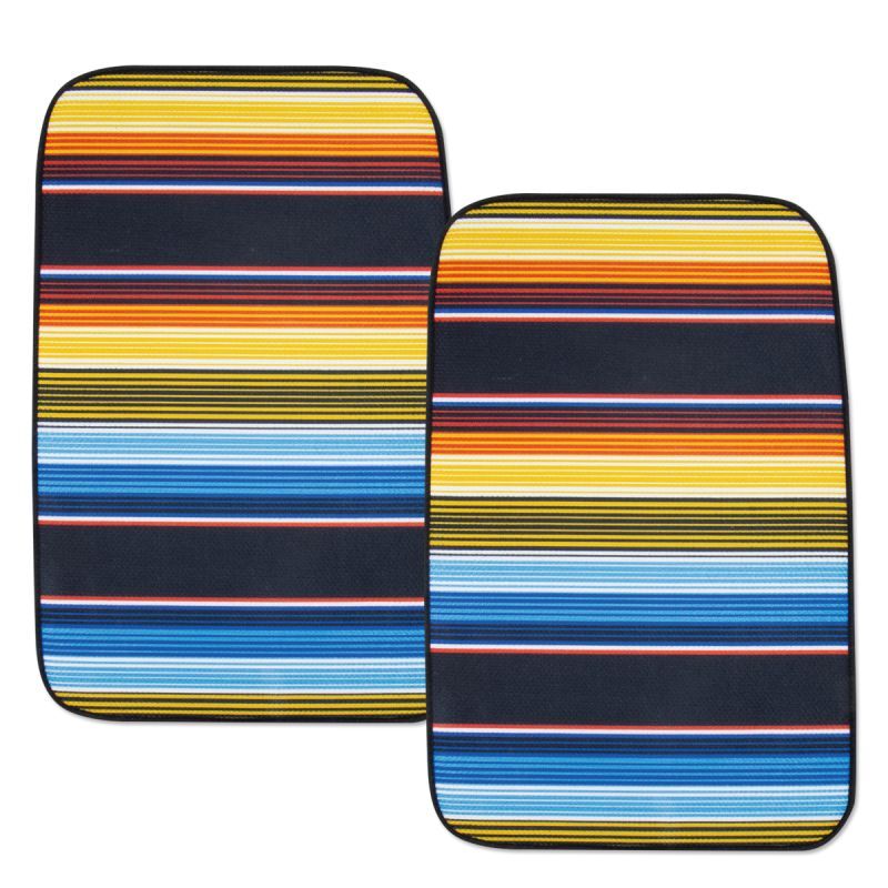 Universal Serape-patterned colorful floor mats, recommended for those who wish to add vibrancy to their interiors or for those looking to switch from genuine ones. The nibbed underside of this mats ensures the mats are stationary when installed.