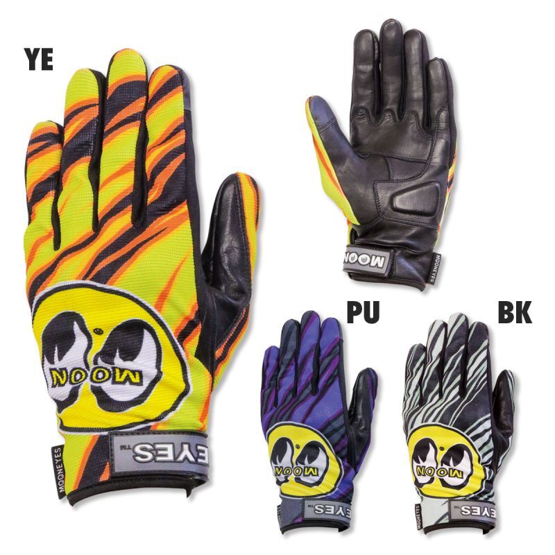 Riding meshed gloves with MOON Eyeball logo largely designed.