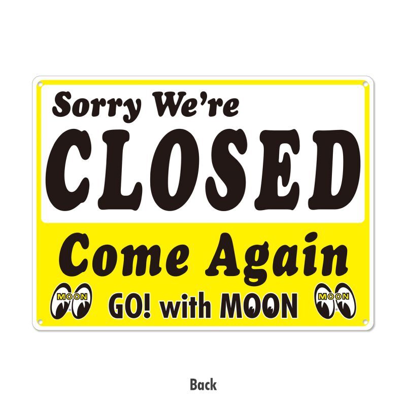 This is a reversible sign plate of OPEN / CLOSED featuring the iconic yellow color of MOONEYES, adding a touch of American atmosphere shop sign.