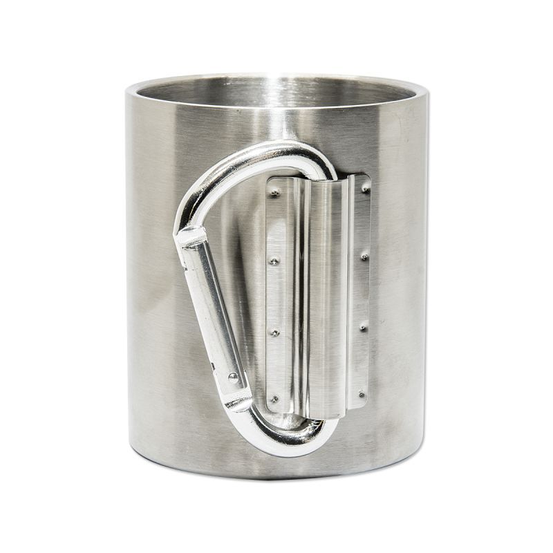 Introducing a 270ml stainless steel mug equipped with a convenient carabiner, perfect for carrying during camping and outdoor activities.
