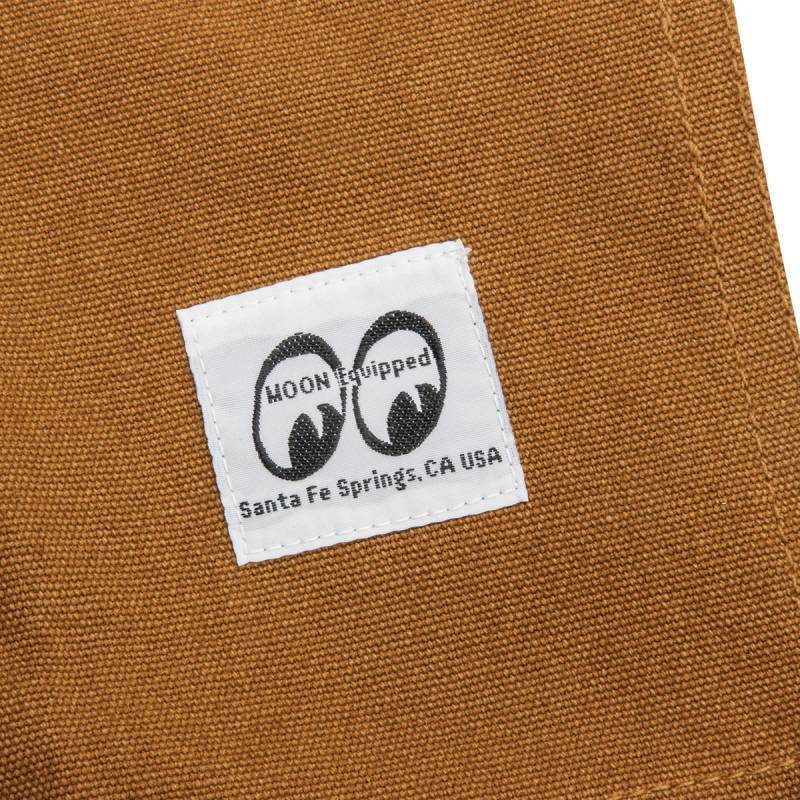 Useful apron with MOON Equipped logo largely printed on the front. Around the bottom of the apron, it is accented with the MOON Equipped tag. Firmly made canvas material is used with, matt silver eyelet and rivet, which makes it authentic.