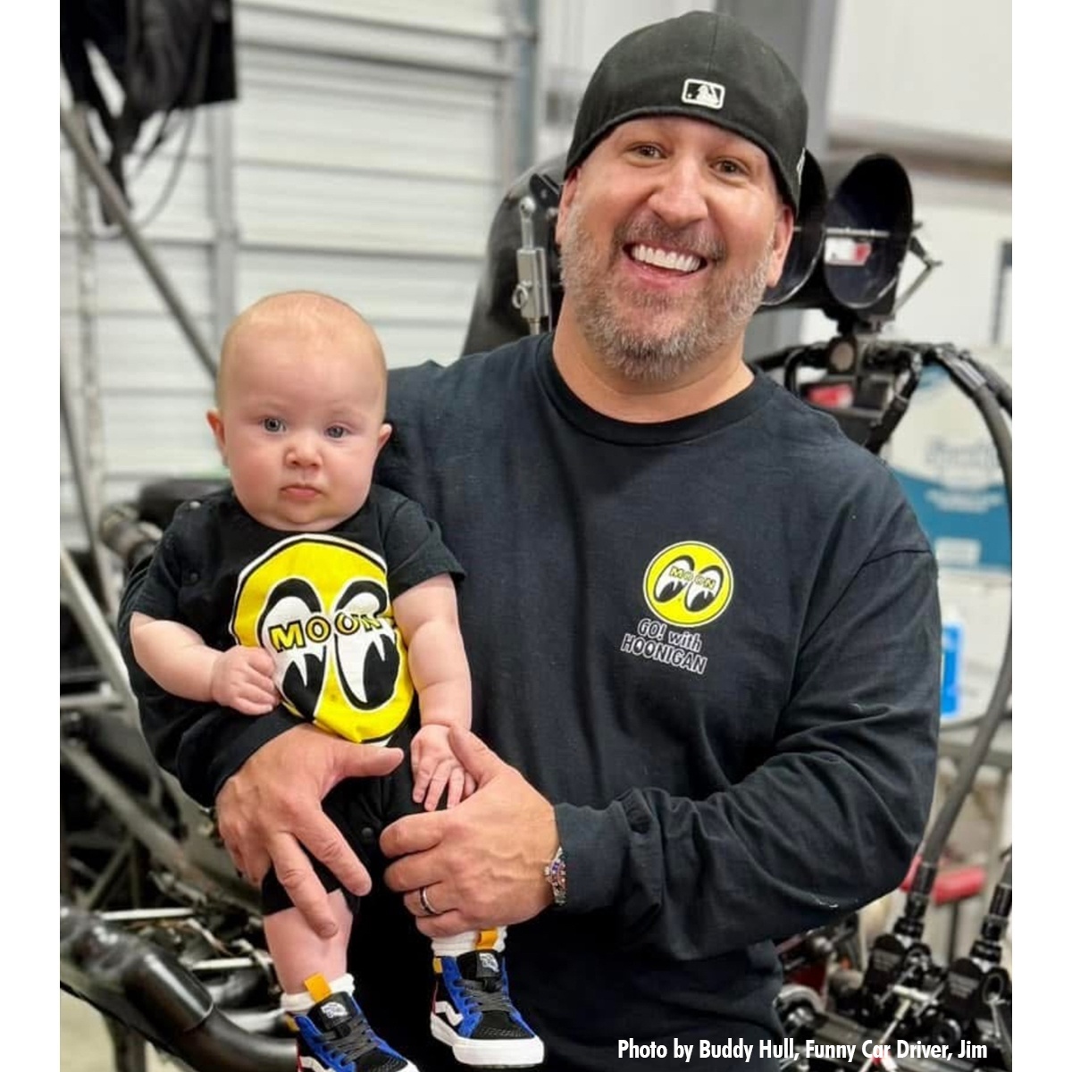 This baby romper features a large MOON Eyeball logo on the front and back.