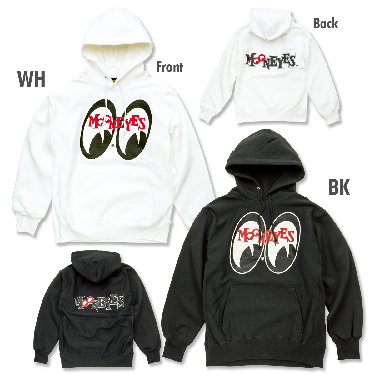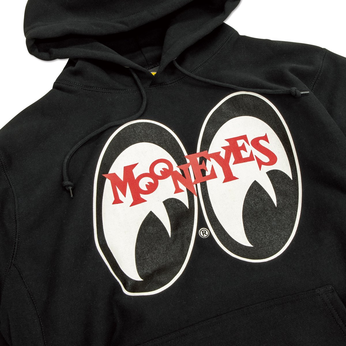 Introducing the iconic pullover hoodie featuring the vibrant MOONEYES Eyeshape logo, a beloved Eyeshape greeting visitors at the Honmoku Street side entrance of MOONEYES Area-1.
