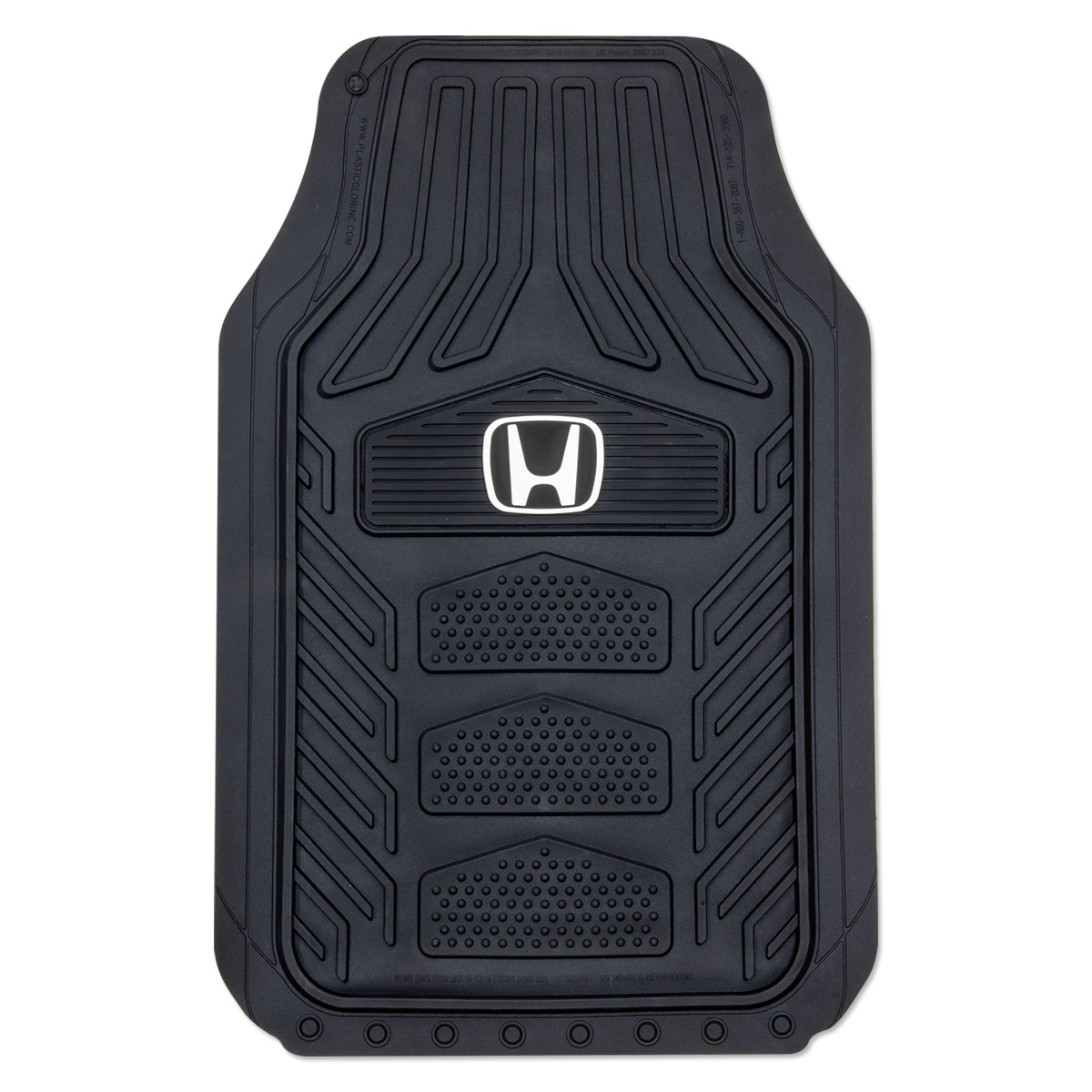 All weather 4pc floor mat with Honda Logo. Rubber material so, it can be cleaned easily. It is OK to wash it with water.