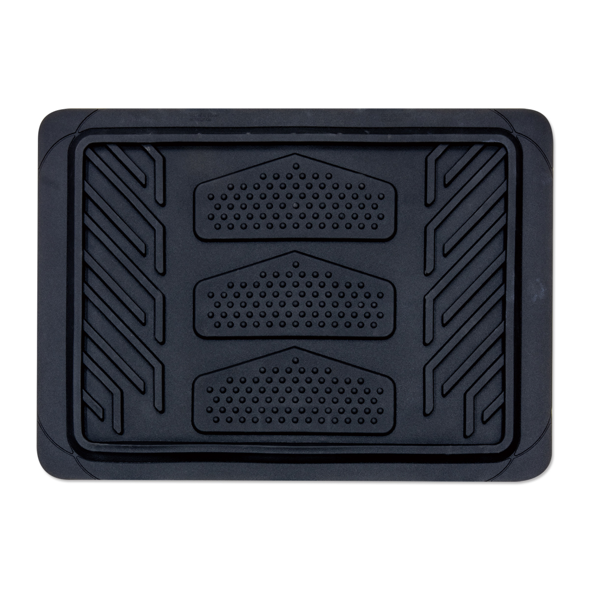 Ensure the correct floor mat is selected for the driver's side and passenger side, if applicable. Mats on the driver's side must be positioned and anchored to provide a minimum one-inch clearance between the front edge of the mat and the vehicle pedals. Use only with mat design facing UP.