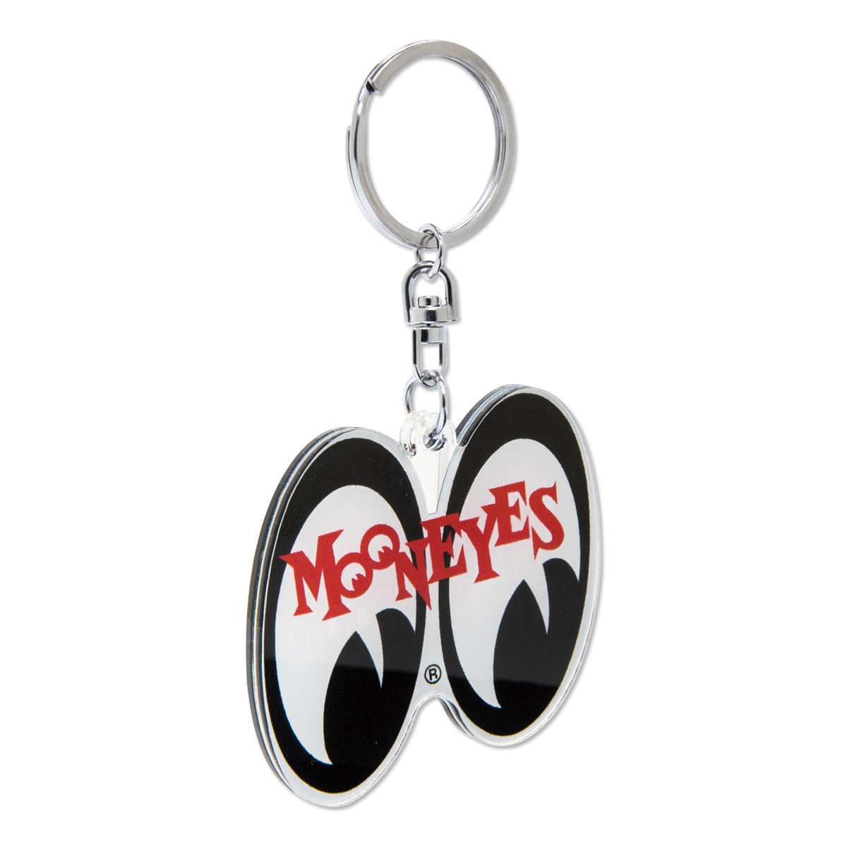 Introducing the acrylic keyring featuring the vibrant MOONEYES Eyeshape logo, a beloved Eyeshape greeting visitors at the Honmoku Street side entrance of MOONEYES Area-1.