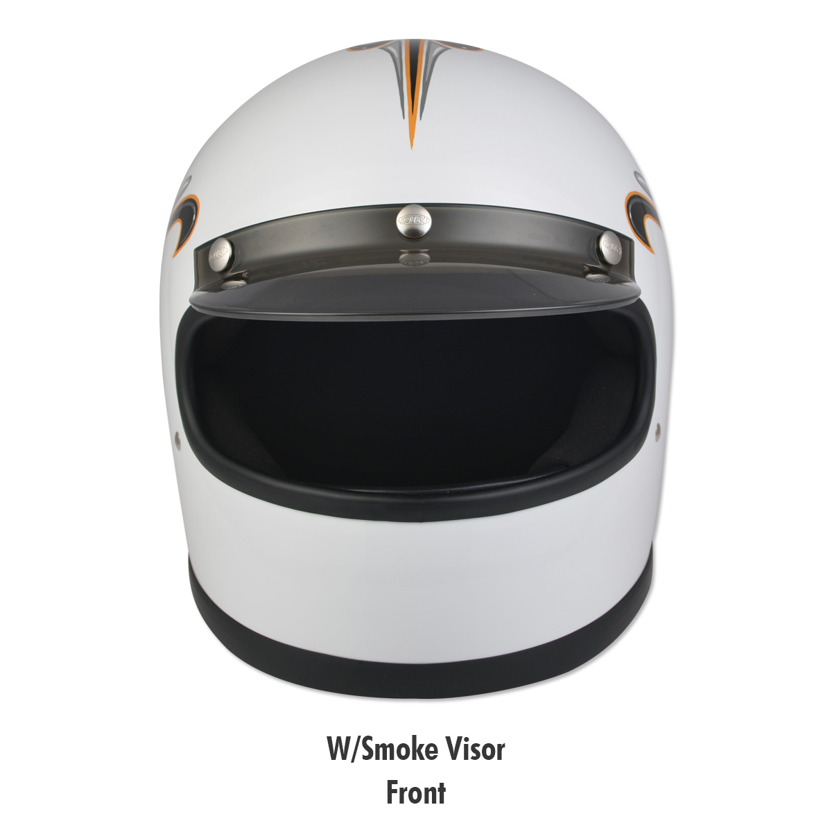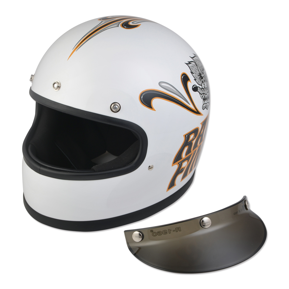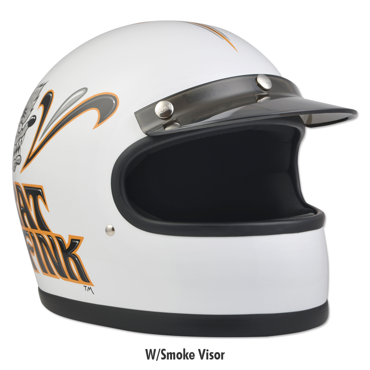 The smoke color will matches with the Rat Fink design Visor can be mounted with three buttons, which is easy to remove and mount. You can adjust the 2 points on the side so, it can be used for other helmets.