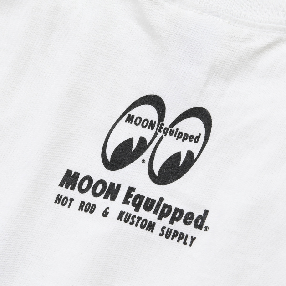 On the back MOON Equipped logo, MOON Equipped HOT ROD & KUSTOM SUPPLY lettering printed.