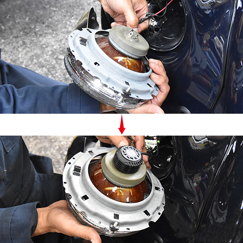 By using a separately sold H4 LED bulb base, you can enjoy reduced power consumption, brighter and more stable lighting, and?if using warm white LEDs?preserve the vintage look of your vehicle. High-efficiency LEDs also reduce the load on the wire harness and headlight switch.