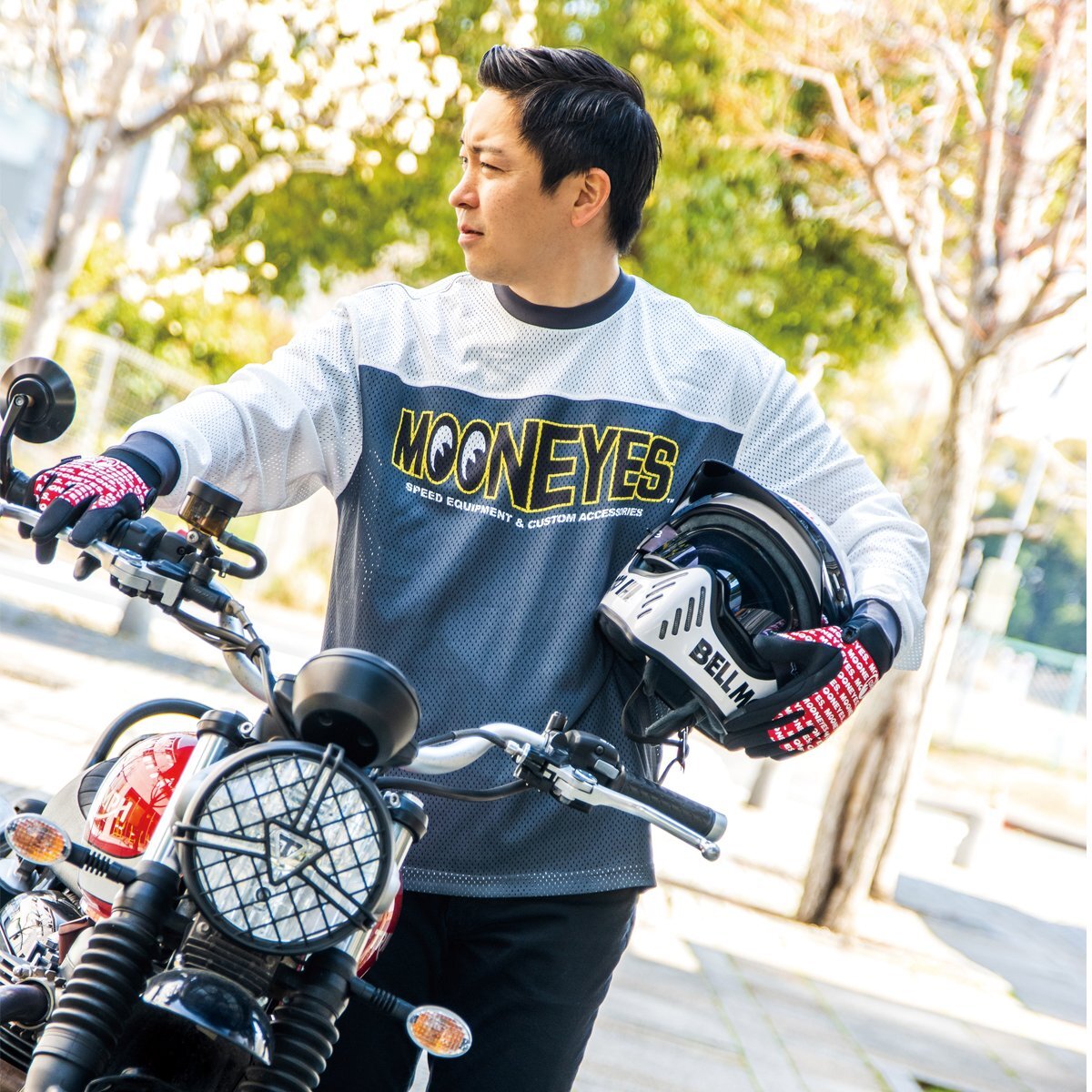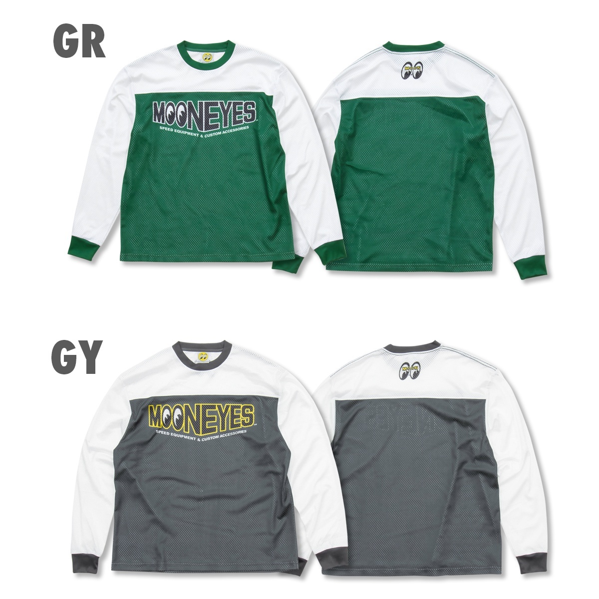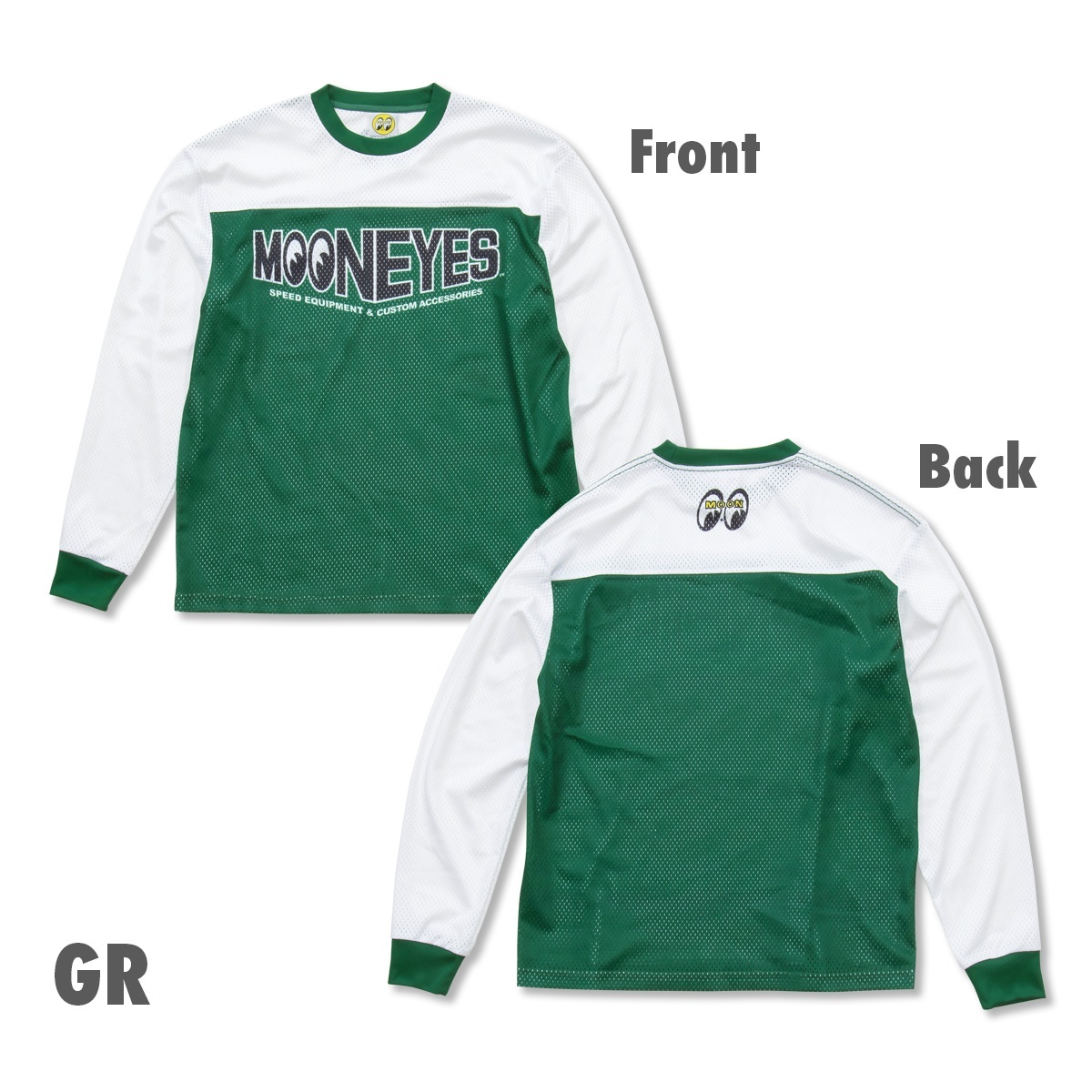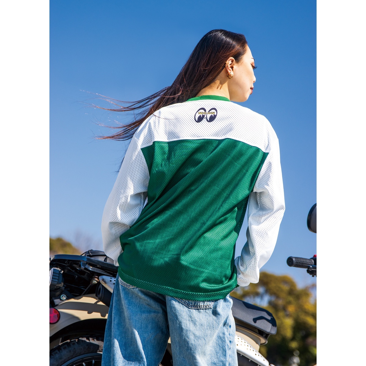 This sporty mesh long-sleeve jersey boldly features the classic MOONEYES logo design, inherited from the Dean MOON era of the 1960s.