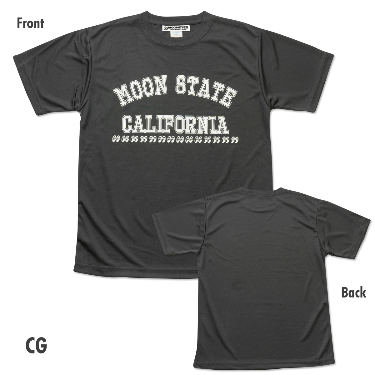 This silky-touch dry T-shirt features the eye-catching MOON Eyeshape Logo with MOON STATE CALIFORNIA on the front.