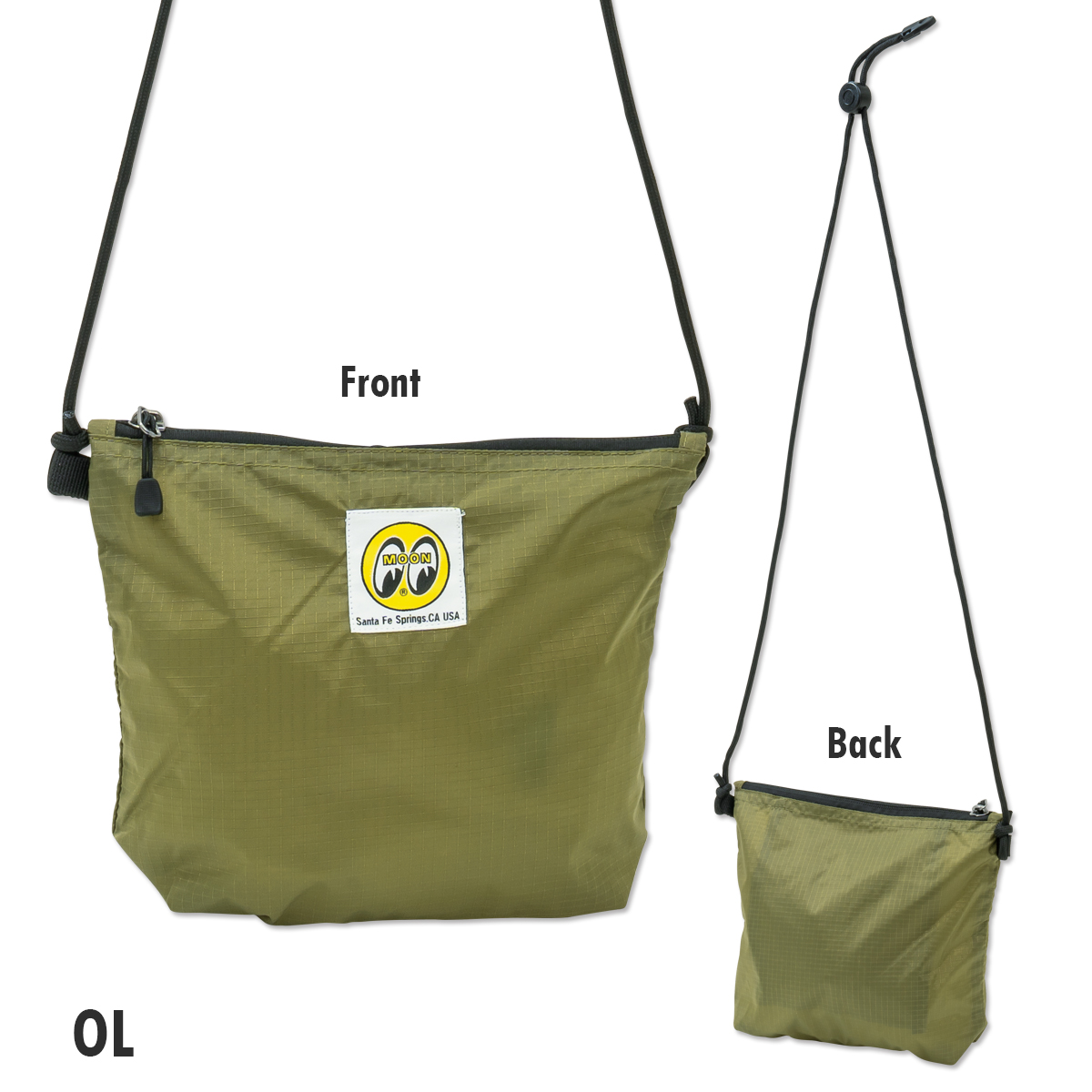 A nylon sacoche featuring a brand label with the MOON Eyeball logo.