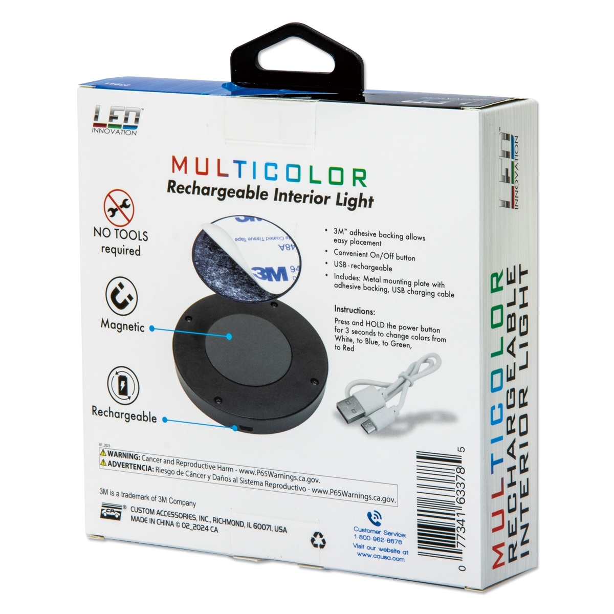 A magnetic interior light that can be easily installed almost anywhere inside your car and lights up in four different colors.