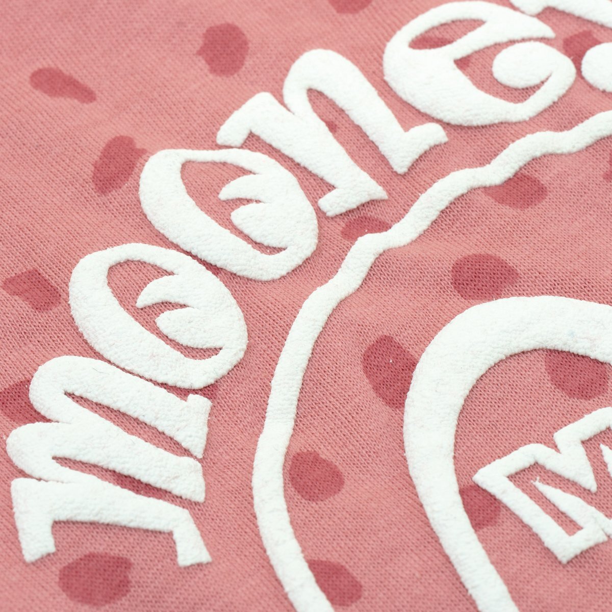 This long-sleeve baby romper features the MOON eyeball logo in fluffy puff print on both the front and back.