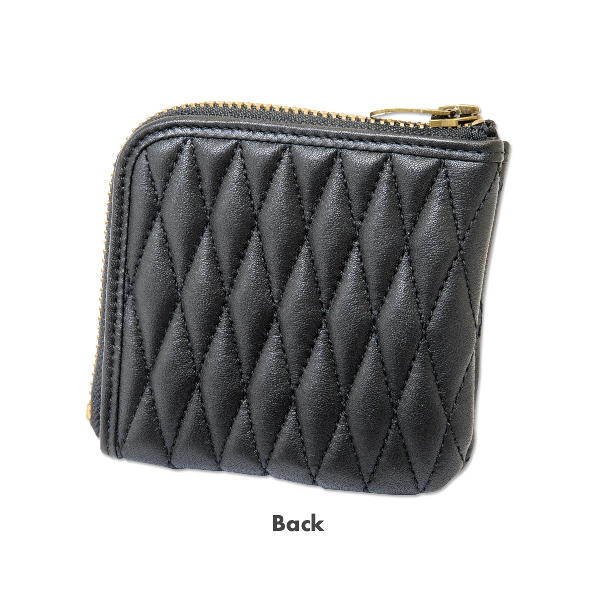 This compact zip wallet features the signature diamond stitching that BACKDROP Leathers is known for, and is made from high-quality cowhide (kip leather) with a soft feel that fits naturally in the hand.