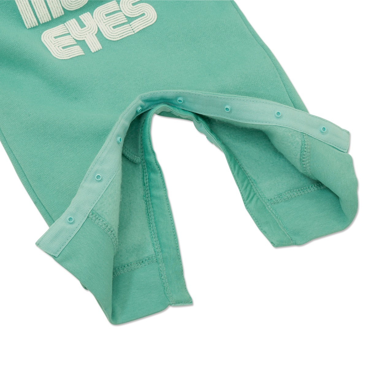 A snap closure at the back of the neck makes dressing easy, and the full snap opening at the inseam allows for quick outfit changes and diaper changes.