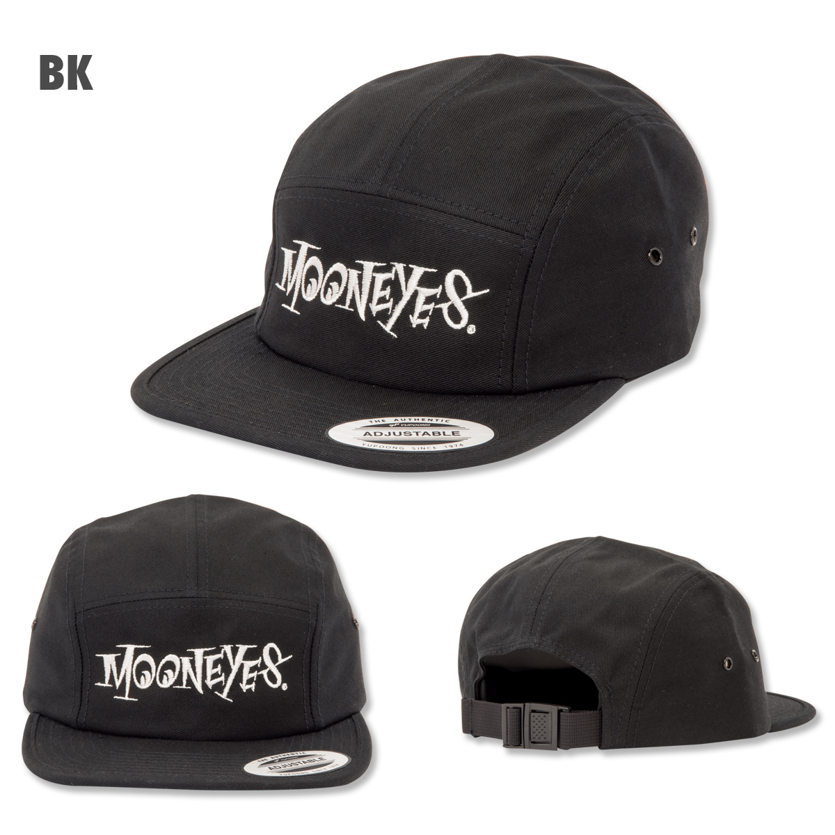 A stylish jockey hat featuring the spiky MOONEYES logo.