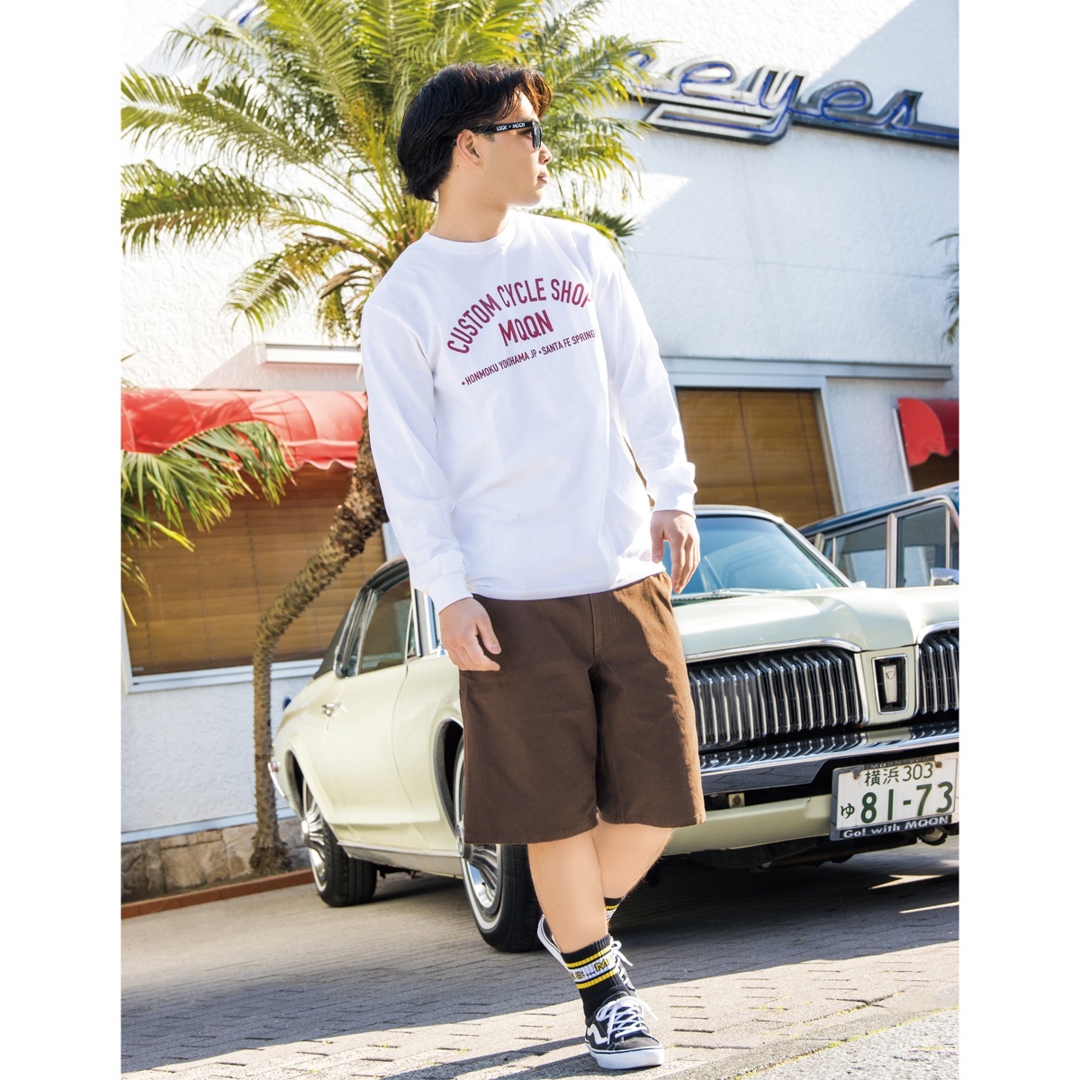 The standout feature is the subtle MOONEYES logo embroidery on the back pocket—a signature accent inherited from the era of Dean MOON. It adds a brand identity to a simple design.