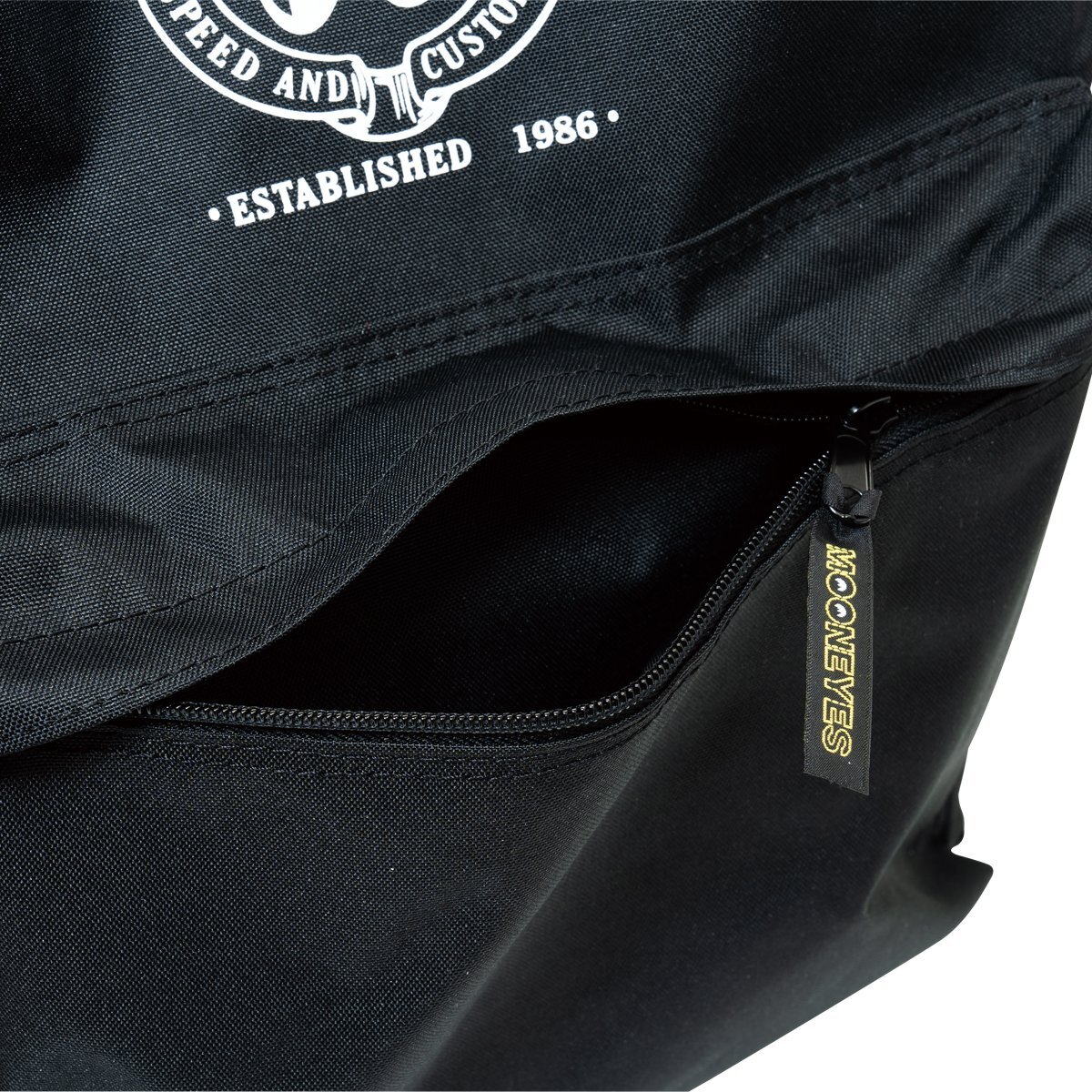 Its a simple yet timeless stylish design, combining an old-school college-style MOONEYES logo with the iconic Eyeshape. For an added touch of brand identity, the zippers are equipped with MOONEYES name tags as accents.