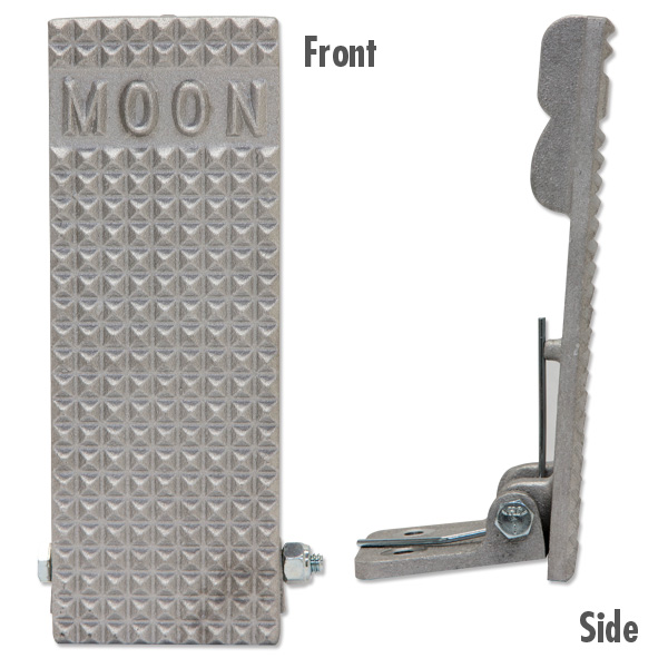 Shown in the center, the small Dragster foot pedal pivots on the heel like the full size foot pedals but the pedal itself is rectangle. Cast aluminum, sand blasted finish.
