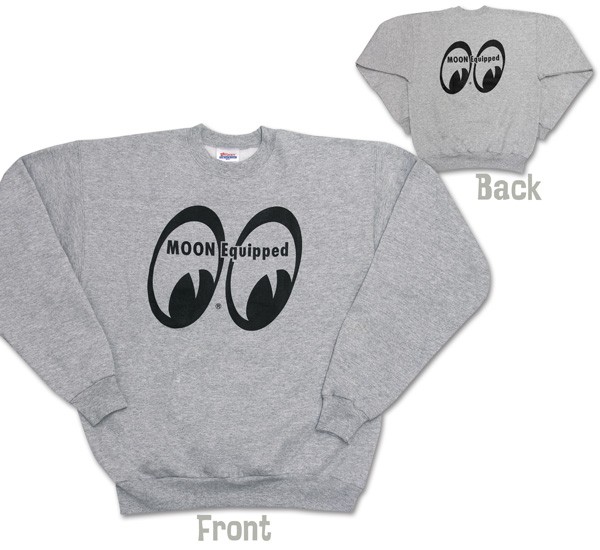 Simple gray sweatshirt with MOON Equipped logo design.