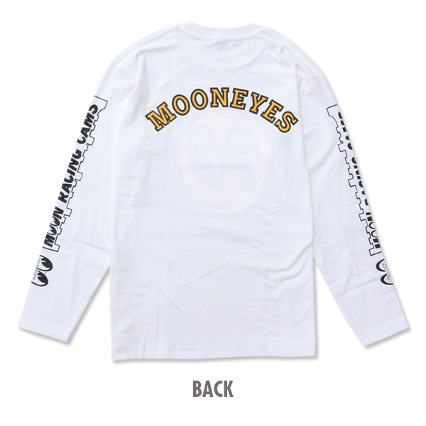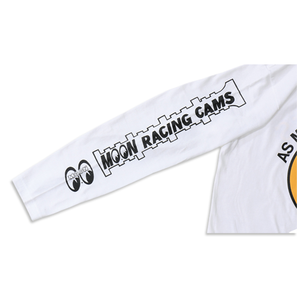 MOON racing camshaft logo is designed on both sleeves with standard Eyeball logo on white long sleeve T-shirt. Color: White