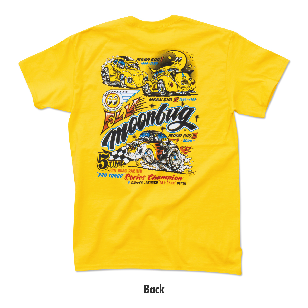On the front FLY MOON BUG lettering and on the back MOON BUG printed.