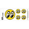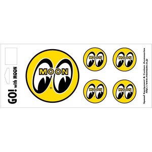 5 Assorted Mooneyes eyeball logo stickers on one sheet.