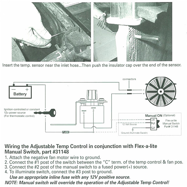 水温によって自動的に電動ファンが回りだしたり止まったりするセンサー。