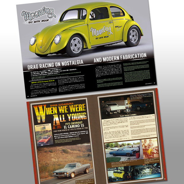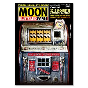 MOON ILLUSTRATED Vol. 11 (MIM#11). Featured articles include HCS2013 guest Starlite Rod & Kustom with their two awesome cars. Other topics covered include 1964 Triumph "MQQN Machine", 1954 VW Oval "MQQNBUG", Kyushu shop California Cycles, Shizuoka shop Vannuys Automotive, Yamaha XS250SP "Easy Twin", 1970 Toyopet Crown MS51, Shige Suganuma's story about his 1972 El Camino SS, Wildman Ishii's crazy collection, MQQN Cafe special Elvis Sandwich, event information and much more. Plus, last but not least, the complete MOONEYES Catalog.
