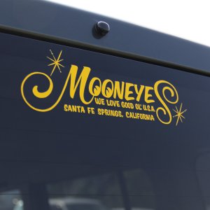 CQQL MOONYEYES logo and WE LOVE GOOD OL'USA SANTA FE SPRINGS, CALIFORNIA printed.