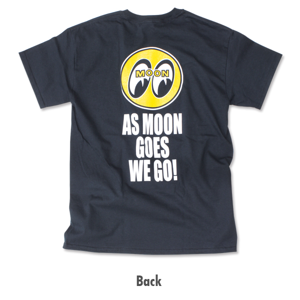 There is eyeball and AS MOON GOES WE GO! lettering printed on the back and front chest.