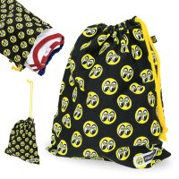 There is MOONEYES logo on left hem and on both sides there is cute design, yellow pocket.